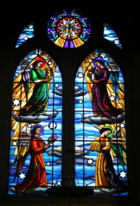 , cuyo efecto lumínico transforma el interior de las catedrales góticas. Por regla general, las zonas altas de los templos se reservan para las figuras de gran tamaño; las ventanas de las naves laterales y de la gírola se destinan al Antiguo y Nuevo Testamento o leyendas hagiográficas (relacionadas con los santos); y en el centro de los rosetones de las tres fachadas es ocupado, indistintamente, por Cristo o la Virgen con el Niño.