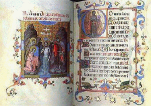Durante el siglo XV va a ser la casa de Valois la gran promotora de obras y artistas sobre todo procedentes de los Países Bajos. Muchas de las obras sobre tabla y mural se han perdido con el tiempo, por lo que para conocer un poco mejor el estilo internacional francés tendríamos que fijarnos en las miniaturas de los libros. El Libro de Horas sustituye al Salterio, que como él, es también de uso personal y de pequeño formato. Las oraciones en ellas recogidas se refieren a la Pasión, a la Virgen o a los santos y sus miniaturas hacen alusión a los textos. Juan, segundo hermano de Carlos V y duque de Berry, hizo gran cantidad de encargos a sus miniaturistas. No solo se hicieron libros para la devoción, sino que a veces eran solamente libros ilustraciones para el disfrute visual.